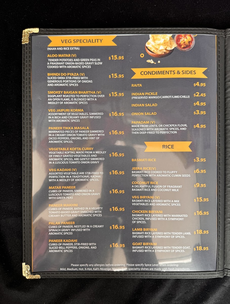 Masala Kraft - Indian - Thai - Indo Chinese Menu